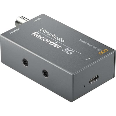 The UltraStudio 3G Recorder from Blackmagic Design enables you to capture or stream video from your camera or other SDI or HDMI source using your computer's Thunderbolt connection. This recorder supports both YUV and RGB video resolutions up to 1080p60 via 3G-SDI or HDMI.