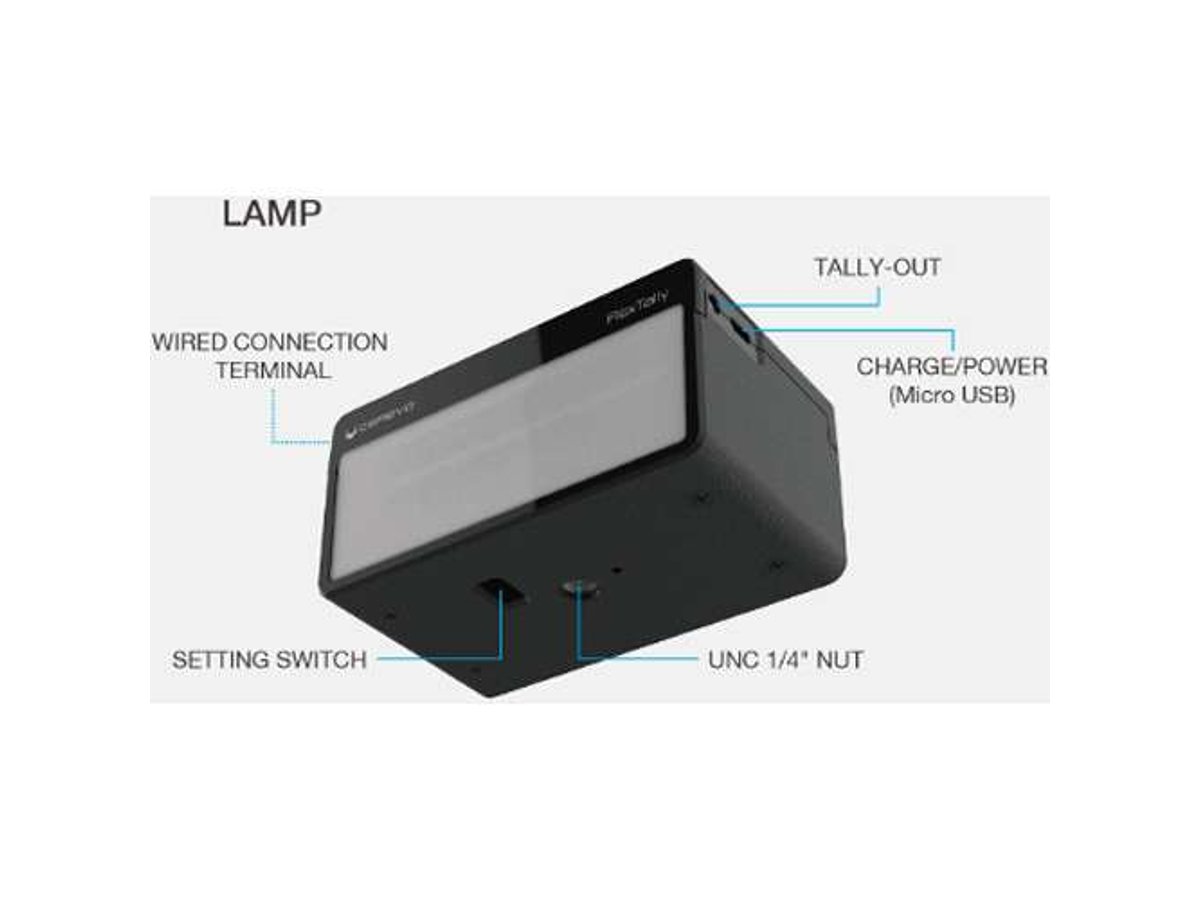 The Cerevo FlexTally is designed to provide a simple-to-operate multi-camera tally solution for small studios and beyond. An included station unit connects to a Cerevo LiveWedge or third-party switcher (see more below) over Ethernet or GPIO, and four lamp units connect to your cameras via tally outputs and work wirelessly from up to 328' away from the station unit. The station unit is AC-powered and the lamps have built-in batteries that run from 6-12 hours depending on brightness. Without any software required, you can change the assigned lamp ID and other settings via a function button on the station unit.