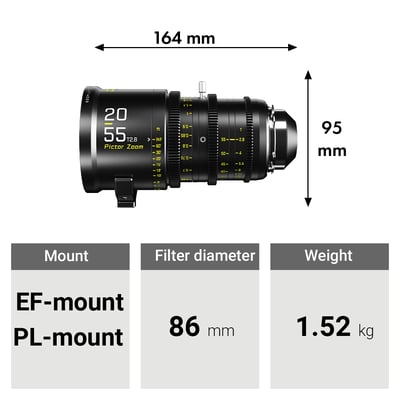 • DZOFilm Pictor 20 to 55mm T2.8 Super35 Parfocal Zoom Lens (PL Mount)