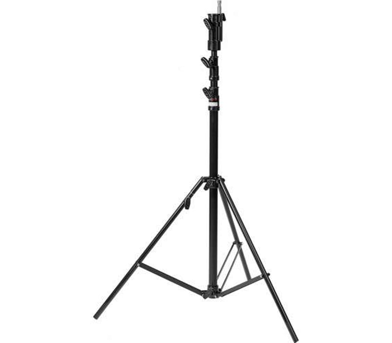 This Combo Black Aluminum Stand from Matthews can hold up to 25 lb and extends from 48" to 124" with a footprint of 26". It has a Rocky Mountain Leg to allow it to be placed on uneven surfaces. What makes this stand a combo is that it has both a Junior (1 1/8") receiver and a 5/8" stud.