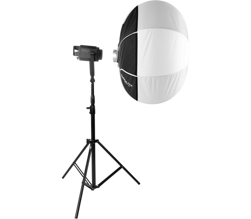 Ideal for hanging overhead on a boom, the 80 cm Lantern Softbox from NanLite is a near omni-directional light source that spreads light over a 270° area to increase ambient light or to provide the type of overhead lighting you'd see at a table in a restaurant or club. The Lantern comes with a Bowens speed ring that besides NanLite, fits the many flash heads that use this popular mount. The Lantern comes with a two-piece skirt to allow blocking some of the pervasive light as needed.