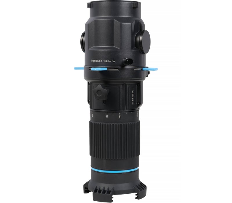 Designed for precision and efficiency, the Projection Attachment for Bowens Mount with 25-45° Zoom Lens from Nanlite features zoom capability, which significantly improves control. The projection attachment enables a variable 25 to 45° beam angle, with a focusing ability that delivers a higher light output. It is fully compatible with standard Bowens mount fixtures under 800W, such as the brand's Forza, FC, and FS series LEDs. Thanks to the 360° rotatable lens barrel, zooming does not require the removal of gobos or shutters. A convenient, yoke-free 6 lb design allows you to attach the accessory directly to the fixture. This projection attachment is heat resistant, lightweight, and compact, making it a useful tool for solo creators and compact studios.
