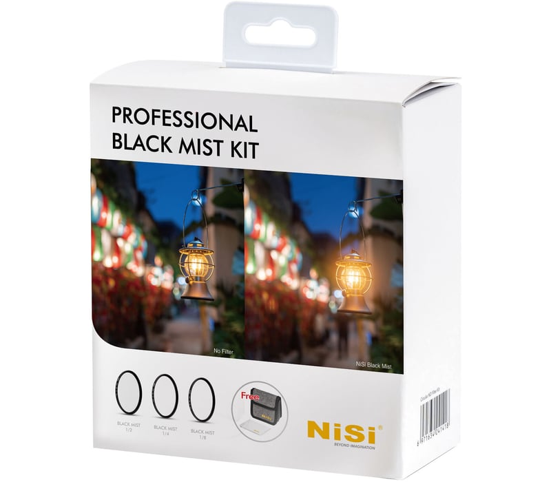 This 82mm Professional Black Mist 1/2, 1/4, and 1/8 Filter Kit from NiSi can be used to create a cinematic look by lowering contrast and highlights within the frame to balance the tonal range between highlights and shadows. Black mist diffusion filters are also commonly used to help soften wrinkles, blemishes and create a flattering image of a subject. Black mist suppresses highlights and lifts shadows for well-balanced contrast. Light sources maintain a strong center with a pleasing glow from the light source. Beyond portraiture, black mist filters can also be used in other applications, such as night photography, landscape, and still life, to create a cinematic atmosphere by adding extra blooming and gradients to the highlights in a scene. Any direct light source will become more film-like, with a smoother, buttery texture around the highlights.