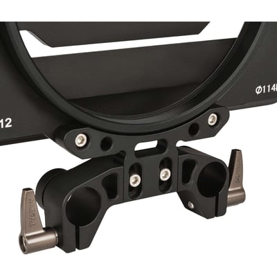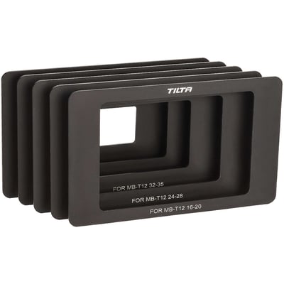 Featuring a lightweight yet strong carbon-fiber construction, Tilta's versatile MB-T12 Matte Box can secure to your camera's lens via its built-in clamp or to 15mm rods using the included 15mm LWS rod bracket. While a 134mm lens adapter is installed, 114, 110, 95, and 85mm adapters are also included for fitting different size lens diameters. Three filter stages hold 4 x 5.65" filters for creatively composing your shots. All three stages are fixed and do not rotate. To effectively block possible sources of flare and ghosts, a 5-piece hard matte set is included, working with lenses from 16mm all the way up to 180mm. A top flag is also included, which attaches using the top screws to block additional light from above the lens.