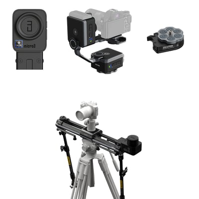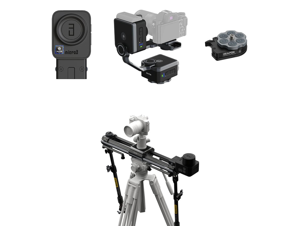 Zeapon Micro3 è una innovativa serie di slider a doppia estensione, che condividono lo stesso motore. Micro3 utilizza un nuovo design dei binari inclinati a 45 gradi che disperdono il peso sia orizzontalmente verticalmente: il carico utile va da 4 a 12 kg. Il design innovativo conserva i comandi tramite pulsanti fisici, per gli utenti che non amano regolare le impostazioni tramite APP.