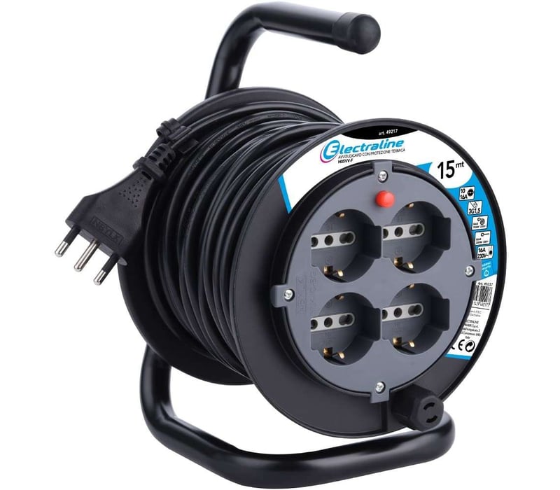 - Prolunga elettrica con avvolgicavo 4 prese polivalenti (schuko 10/16A) spina grande 16A
