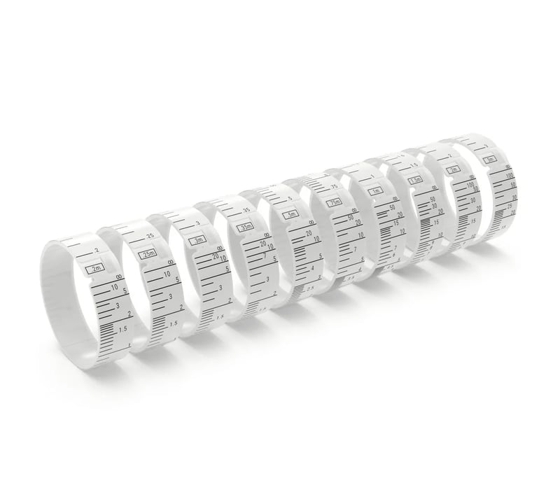 The ARRI Smart Focus Ring Set Meter (10x) consists of ten Smart Focus Rings in different lengths with metric measuring system and plug-and-play attachment to the ARRI Hi-5 Hand Unit.