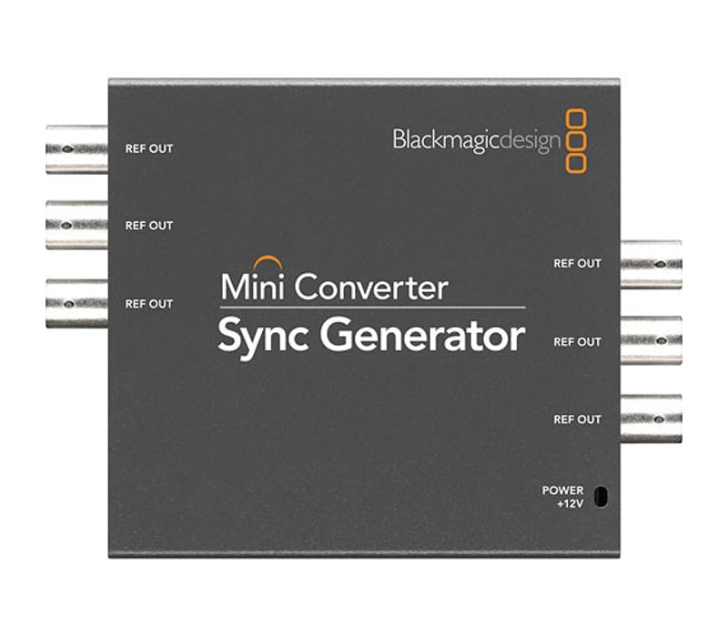 The Blackmagic Design CONVMSYNC is a sync generator. This generator will generate a reference signal in either high definition or standard definition parmeters. It is part of the Mini Converter series and offers six BNC outputs.
