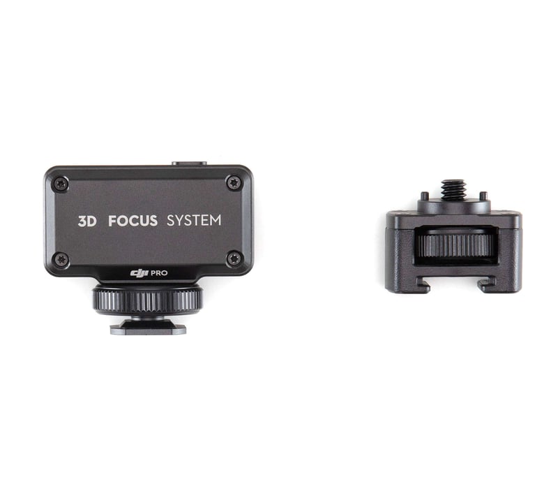 The Ronin 3D Focus System allows you to achieve continuous focus with manual lenses used with the DJI RS 2 gimbal. It's designed to attach to the top of your camera via an included shoe mount and to automatically detect the distance between the lens and subject to enable a center AF point. Two USB cables are included for connecting it to the camera and gimbal.