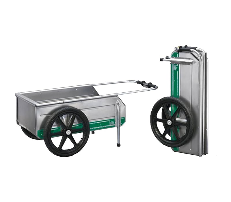 Il carretto pieghevole è in alluminio, inattaccabile dalla ruggine e dalla corrosione. Piegare il carretto è un gioco da ragazzi: basta premere il bottone ed è pronto in meno di un minuto.