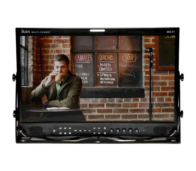 Suitable for both location and studio work, ikan's 21.5" 3G-SDI/HDMI Studio Monitor features a native 1920 x 1080 IPS LCD panel and loop-through SD/HD/3G-SDI and component/composite/S-video inputs/outputs, as well as HDMI and DVI inputs. The removable desk stand features three 1/4"-20 threaded mounting holes that provide a variety of mounting possibilities. The 3G-SDI input loops through to the 3G-SDI output, so you can easily display your video and send it downstream without requiring a splitter. You can input HD component through the 3BNC connectors, which are also loop-through. The monitor supports composite and S-Video signals, and it can accept digital as well as SD video (as NTSC and PAL).