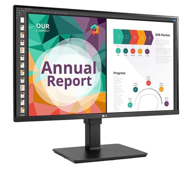 Connect to the LG 32BN67U-B using a DisplayPort or two HDMI inputs, and adjust tilt, height, or the pivot angle with ease, customizing the monitor to fit your setup with the one-click stand design. Wall mountable, this monitor also features two USB 3.1 Gen 1 Type-A ports and a 100 x 100mm VESA mounting pattern.