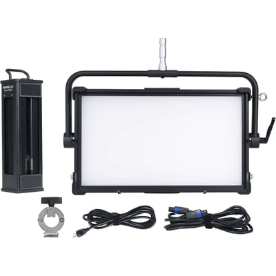 The 0 to 100% dimmable Dyno 650C RGBW Panel from Nanlux is a 32 x 25 x 6.4" panel with a wide beam spread that makes it a great choice for all-around use. The panel has an expansive color temperature range of 2700 to 20,000K to meet ambient light challenges, match other fixtures, or just for creative expression. The 650C's high CRI of 98 indicates superior accuracy in the rendering of color.