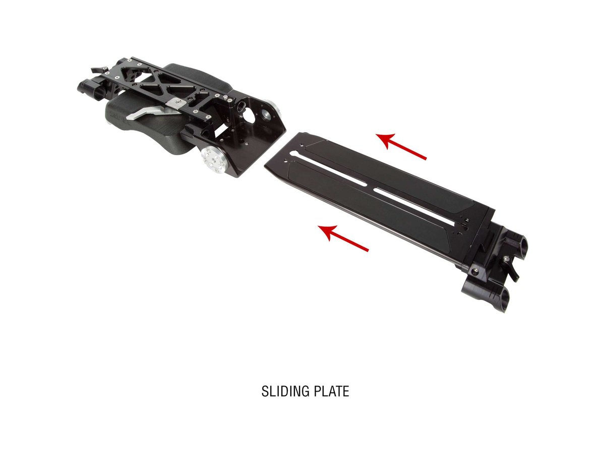 • The sliding baseplate provides a quick positioning of your camera and accessories for an optimal adjustment of your camera's balance center.