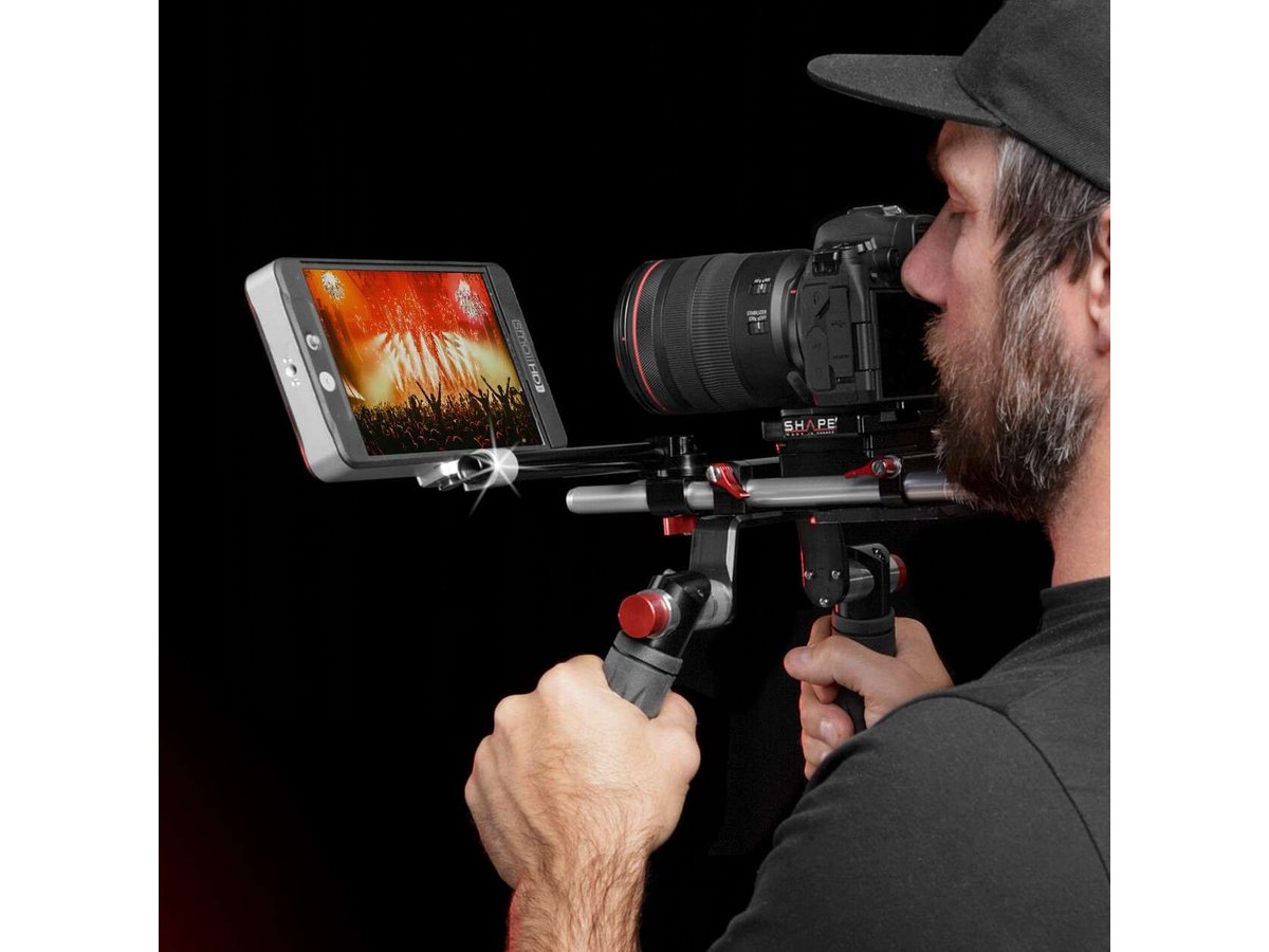 Featuring a sliding camera plate, SHAPE's REVOLT VCT Universal Baseplate can accommodate rigs of varying sizes. Simply attach your camera via 1/4"-20 or 3/8"-16 screws to the top plate, and slide it onto the shoulder plate. Fore and aft movement allows you to balance the weight of your setup properly. Further adjustments can be made by moving the shoulder pad. The 15mm rod clamps at the front and rear of the baseplate allow you to secure 15mm accessories such as a matte box, follow focus, lens motors, lens supports, battery plates, or external recorders. Since the front rod clamp is attached to the top plate, the rod-mounted accessories don't need to be repositioned as the rig is adjusted. Additionally, handles can be mounted to the ARRI standard rosettes on either side of the plate. When not shoulder-mounted, the baseplate can be secured to a standard VCT-14 ENG quick release in a matter of seconds, saving time on set.