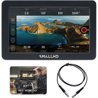 This kit comes with a Focus Pro Monitor, Camera Control for RED® KOMODO™ (software license), and a KOMODO Control Cable (5-pin to 9-pin Connector). Designed specifically to pair with the RED® KOMODO™, Focus Pro maintains the same reliable SmallHD clarity, vivid color detail, and dynamic touchscreen camera control while offering an equal balance between durability and lightweight design. Unlock access to all camera features available thru RED Camera Protocol (RCP2) with the included software activation instructions, and tap into the internal camera settings with intuitive touchscreen configuration tools.
