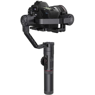 The Zhiyun-Tech Crane-2 is a 3-axis handheld gimbal stabilizer supporting mirrorless and DSLR cameras weighing up to 7 lb. Mount your camera on the included Manfrotto-standard quick release plate, balance it, and shoot for up to 18 hours on the supplied batteries. A rod-mount mechanical focus motor is included and can be controlled via the gimbal's handwheel or an optional remote control for the Crane 2. It can be aligned to the focus or zoom ring of your lens for follow focus or zoom control. A support rod, USB cable, and two universal lens gear rings are also supplied for attaching and connecting the focus motor and using it with virtually all lenses.
